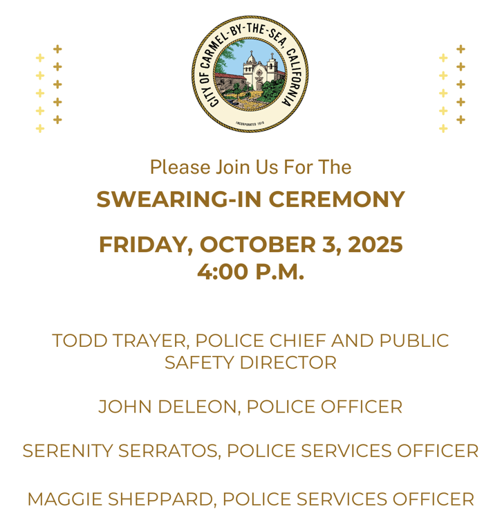 Today! Friday 10/3 4PM City Hall Swearing In Ceremony for Todd Trayer as Chief of Police, plus 3 new officers for our Village